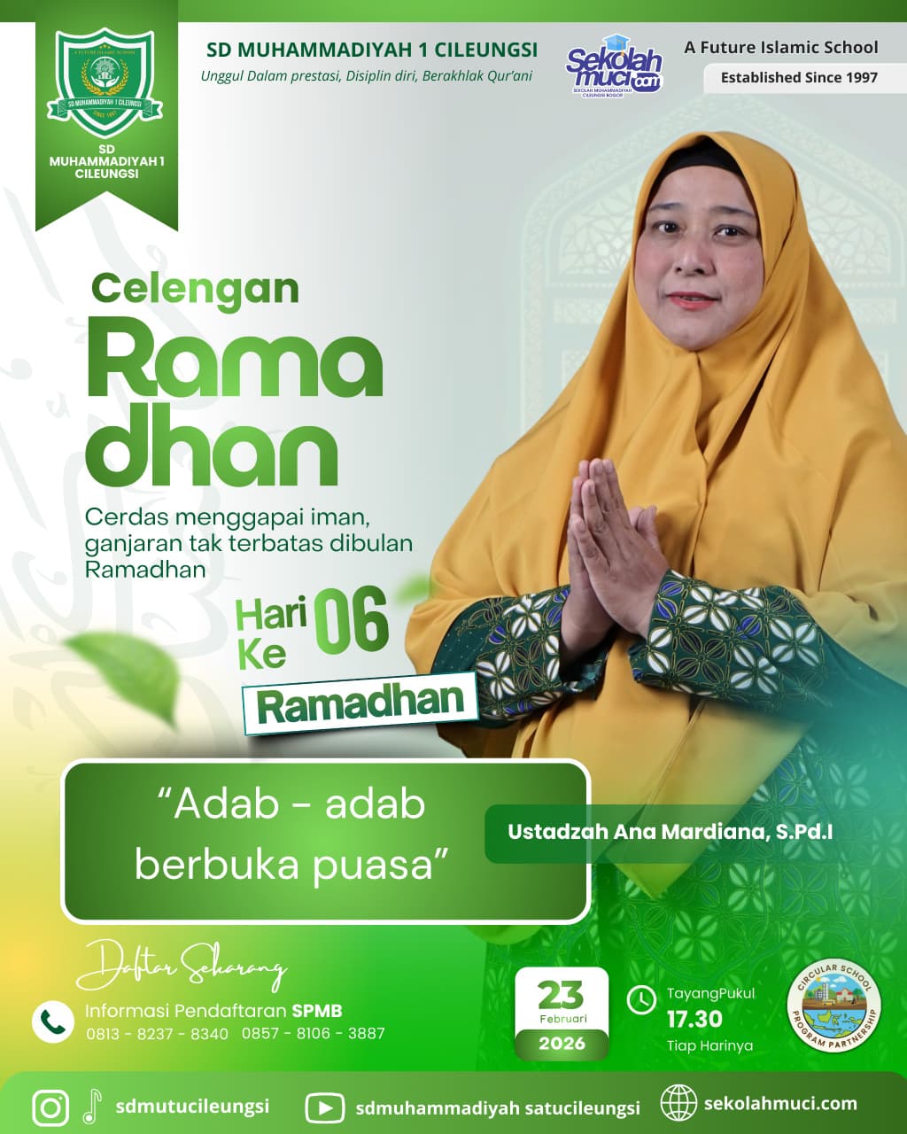 Pada hari ke-6 bulan Ramadhan ini, kita akan membahas sebuah tema yakni “Adab-adab berbuka puasa”