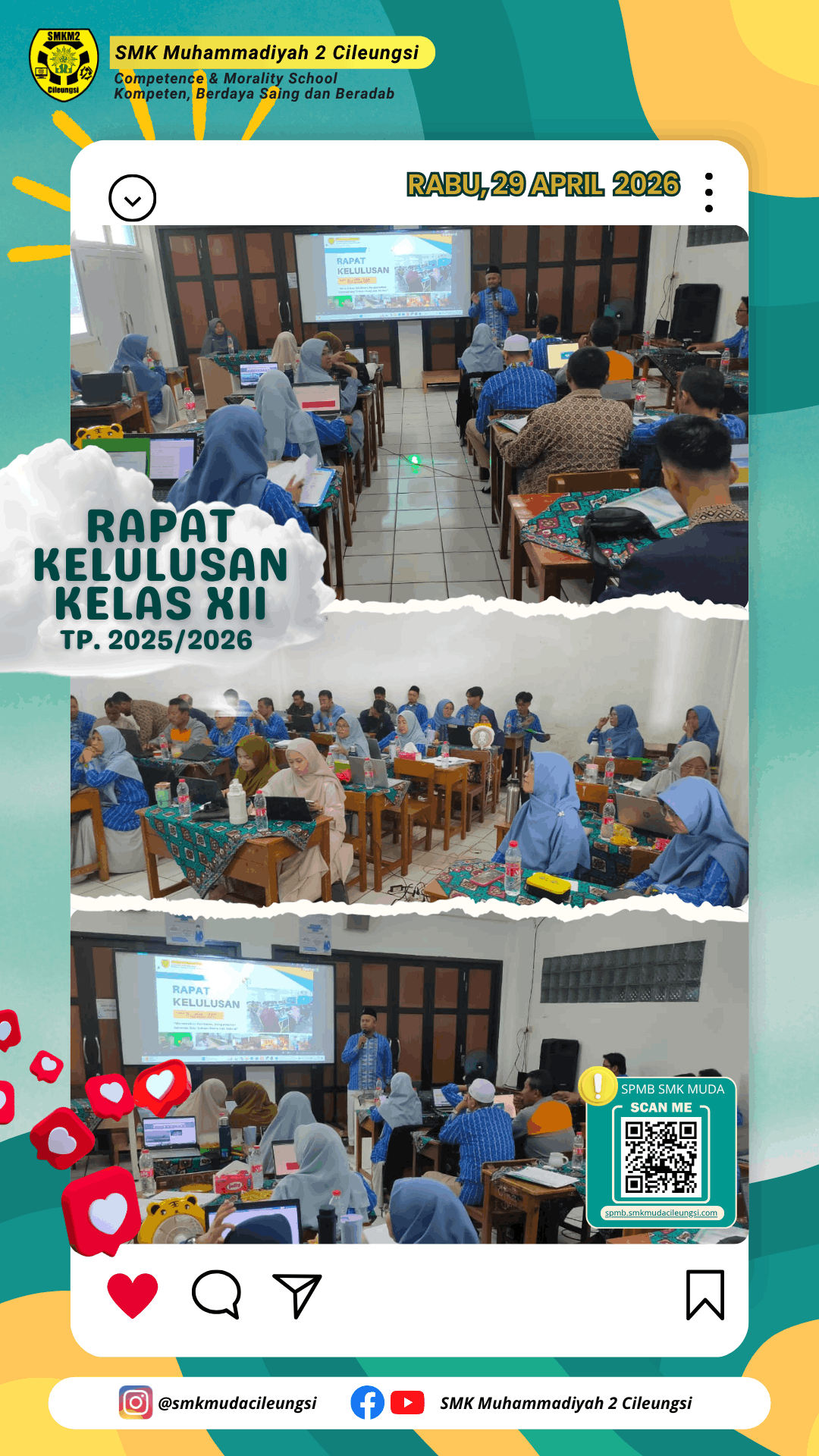 Sedang dilaksanakan Rapat Kelulusan Kelas XII TP. 2025/2026 pada Rabu, 29 April 2026, yang diikuti oleh dewan guru dan tenaga kependidikan.